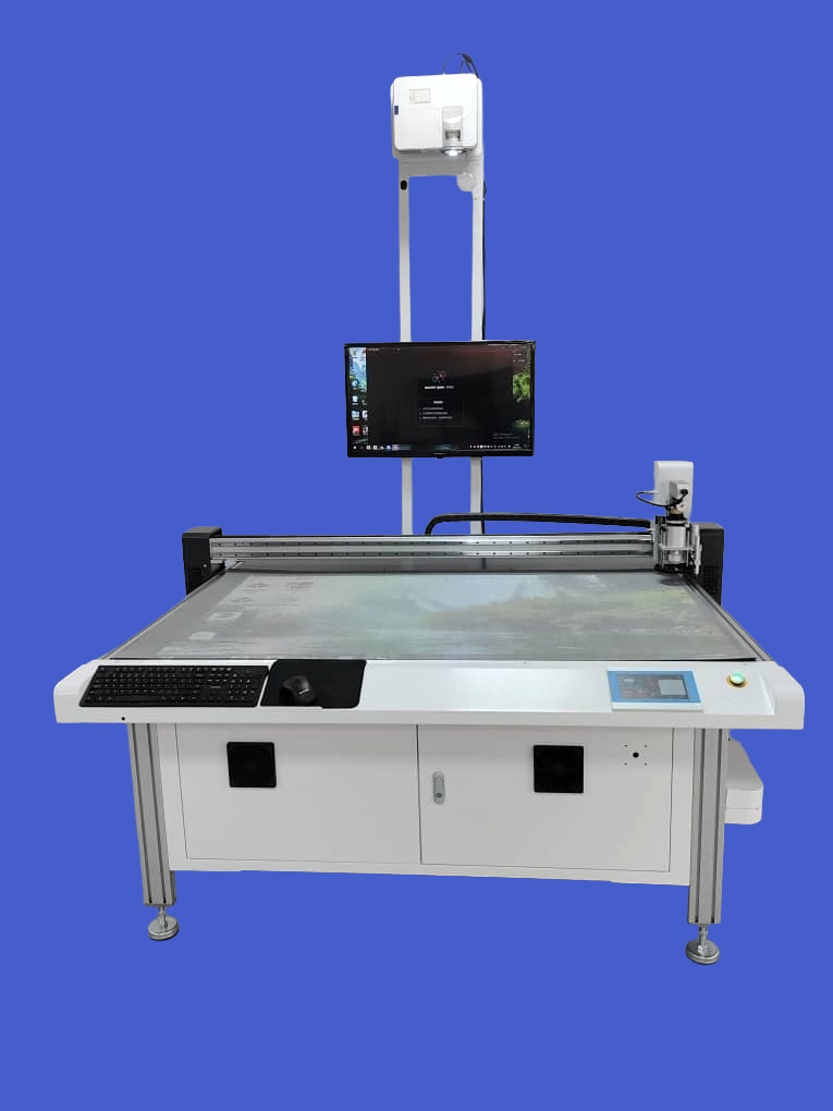 Si tratta di un sistema completo, dotato di computer integrato con monitor e sistema di proiezione in tempo reale: questo permette all'operatore di visualizzare direttamente sul piano di lavoro le sagome del file e di modificarne rapidamente il posizionamento, anche manualmente, in modo semplice ed efficiente.